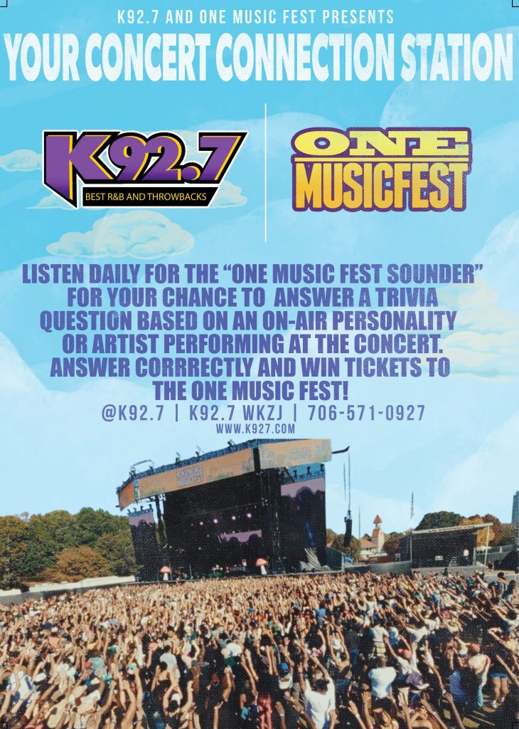-WE’LL THROW YOU A QUESTION ABOUT ONE OF THE LEGENDS PERFORMING AT ONE MUSIC FEST… OR HIT YOU WITH A CURVEBALL QUESTION ABOUT ONE OF YOUR FAVORITE STATION PERSONALITIES.”ANSWER RIGHT — AND YOU’RE ON YOUR WAY TO GROOVE WITH GREATNESS AT ONE MUSIC FEST, COURTESY OF YOUR CONCERT CONNECTION STATION