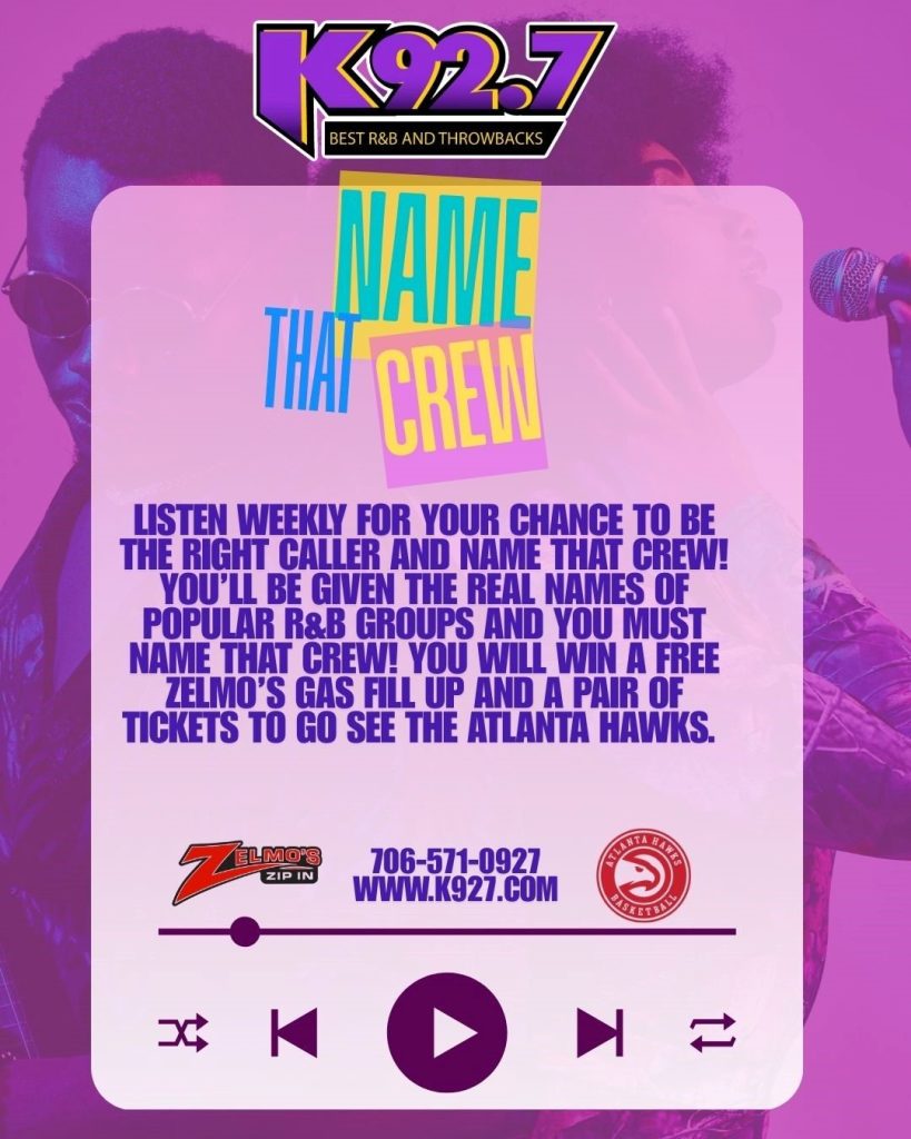 THAT’S RIGHT—FILL YOUR TANK, FILL YOUR SOUL, AND FILL YOUR NIGHT WITH LAUGHTER. CAN’T BEAT THAT COMBO! STARTING NOVEMBER 12TH.BE CALLER NUMBER7 WHEN YOU HEAR YOUR CUE, AND SHOW OFF THAT MUSICAL KNOWLEDGE! WHETHER IT’S NEW EDITION, OR WU-TANG CLAN—IF YOU CAN NAME THAT CREW YOU WIN BIG! IT’S NAME THAT CREW MONDAY THROUGH FRIDAY ONLY ON K92.7 BROUGHT TO YOU BY ZELMO’S ZIP IN.